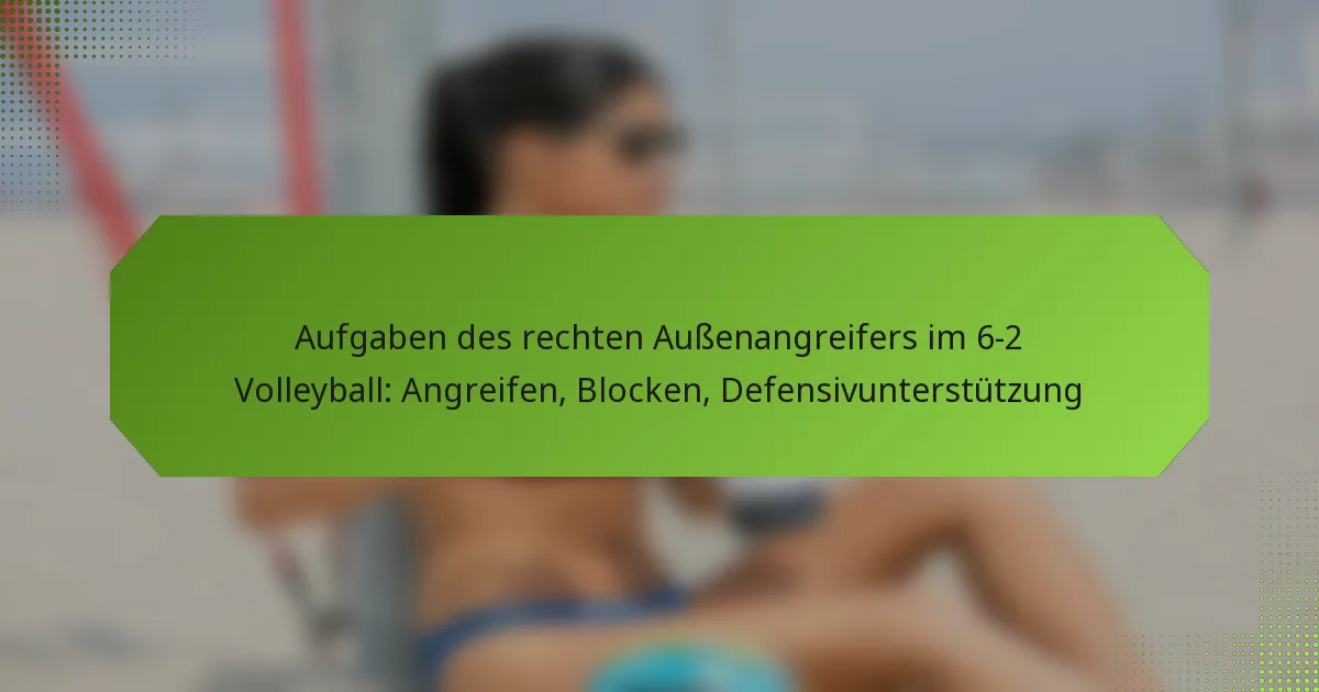 04/02/2026In einem 6-2 Volleyballsystem spielt der Angreifer auf der rechten Seite eine zentrale Rolle, indem er sich auf Angriffe von der rechten Seite konzentriert, Gegner blockiert und essentielle defensive Unterstützung bietet. Diese Position erfordert eine einzigartige Kombination aus offensiven und defensiven Fähigkeiten, die es den Spielern abverlangt, in verschiedenen Techniken und Strategien versiert zu sein. Effektive Angreifer auf der rechten Seite erhöhen nicht nur ihr Punktpotential, sondern tragen auch erheblich zur Gesamtleistung ihres Teams durch Teamarbeit und situatives Bewusstsein bei.